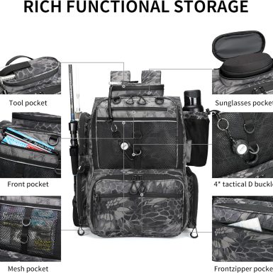 **Product Title:** Rabjen Fishing Tackle Backpack with Rod Holders, Bottle Holder, and Storage Bag for Fishing Gear **Product Description:** Elevate your fishing experience with the Rabjen Fishing Tackle Backpack, the ultimate companion for every angler. Designed with functionality and comfort in mind, this backpack offers a comprehensive solution to organizing and transporting all your fishing…