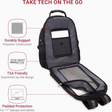 • SwissGear 1900 Scansmart TSA 17 Laptop Backpack, Black, 19-Inch