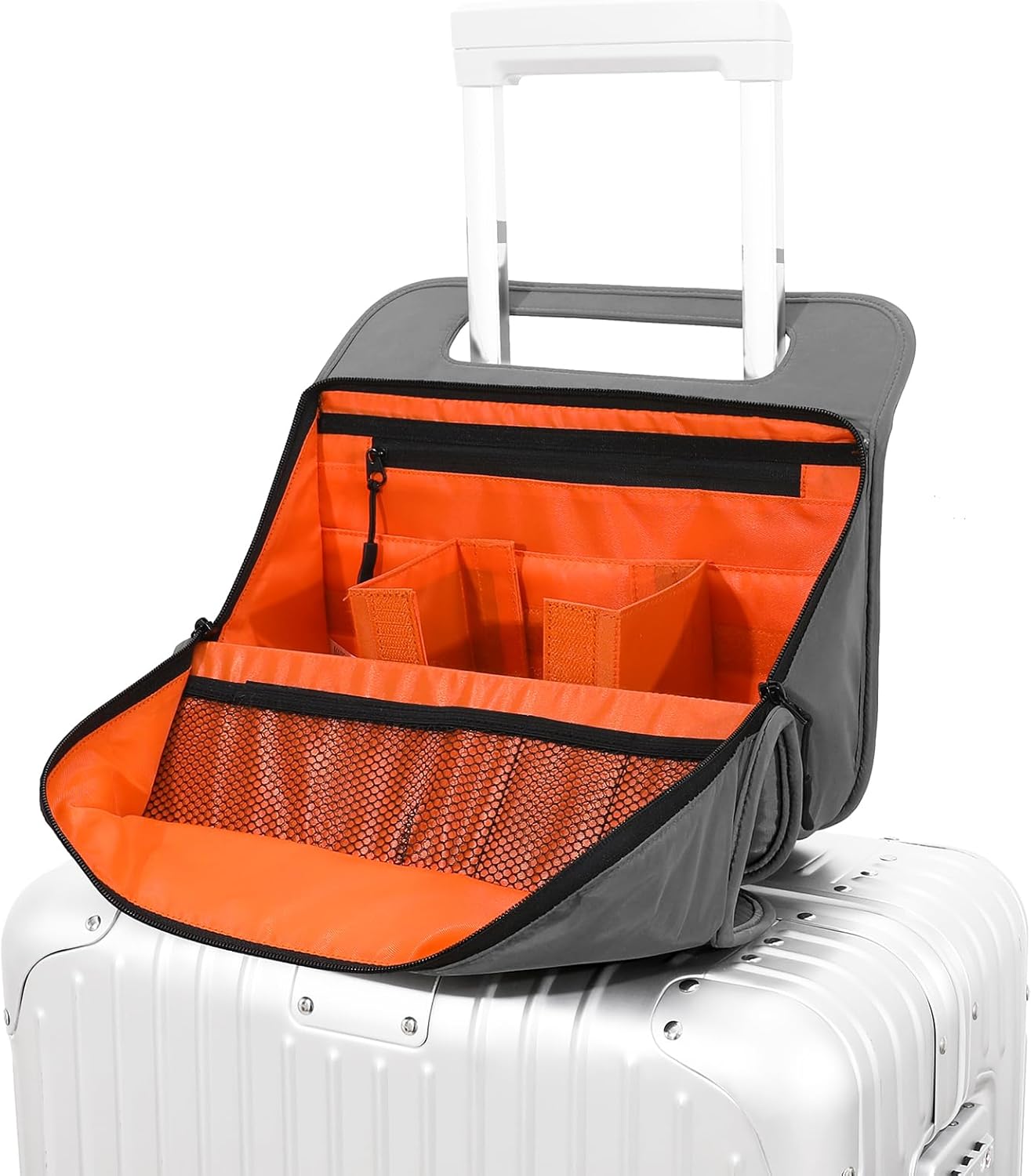 – **Multifunctional Design:** This 4-in-1 organizer effortlessly combines a small business handbag, suitcase drink holder, phone/tablet holder, and airport accessories storage, making it an essential addition to your travel gear.